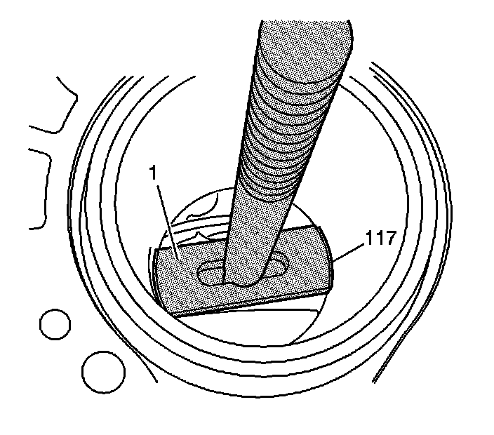 Align the shoe (1) of the cylinder bore sleeve puller EN 45680-402 to the bottom of the cylinder bore sleeve (117).