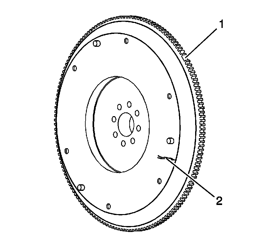 2. Inspect the engine flywheel for cracks, hot spots, or any surface damage (2).