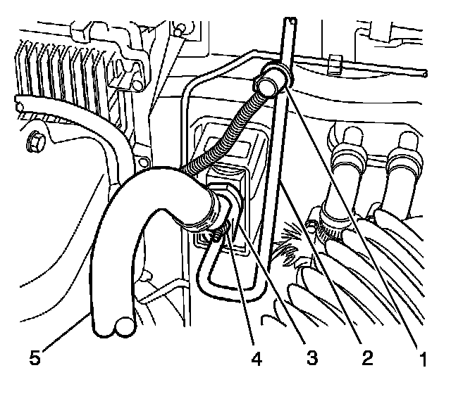 2. Remove the evaporator tube nut (4) from the TXV stud.