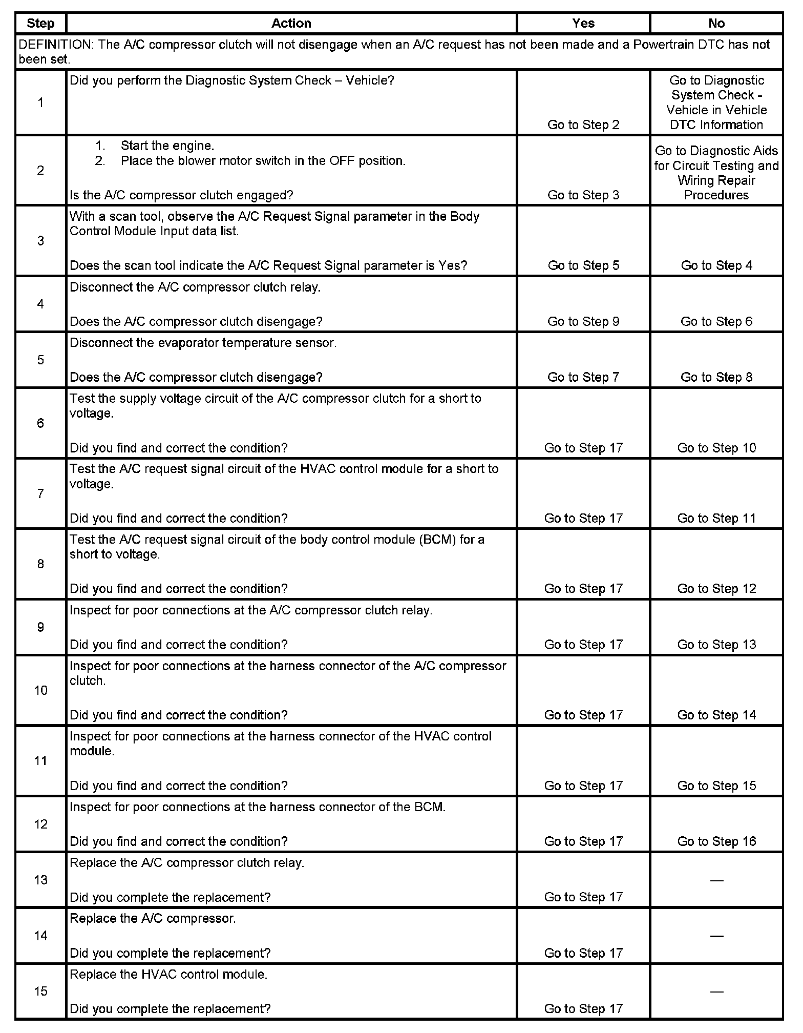 HVAC COMPRESSOR CLUTCH DOES NOT DISENGAGE