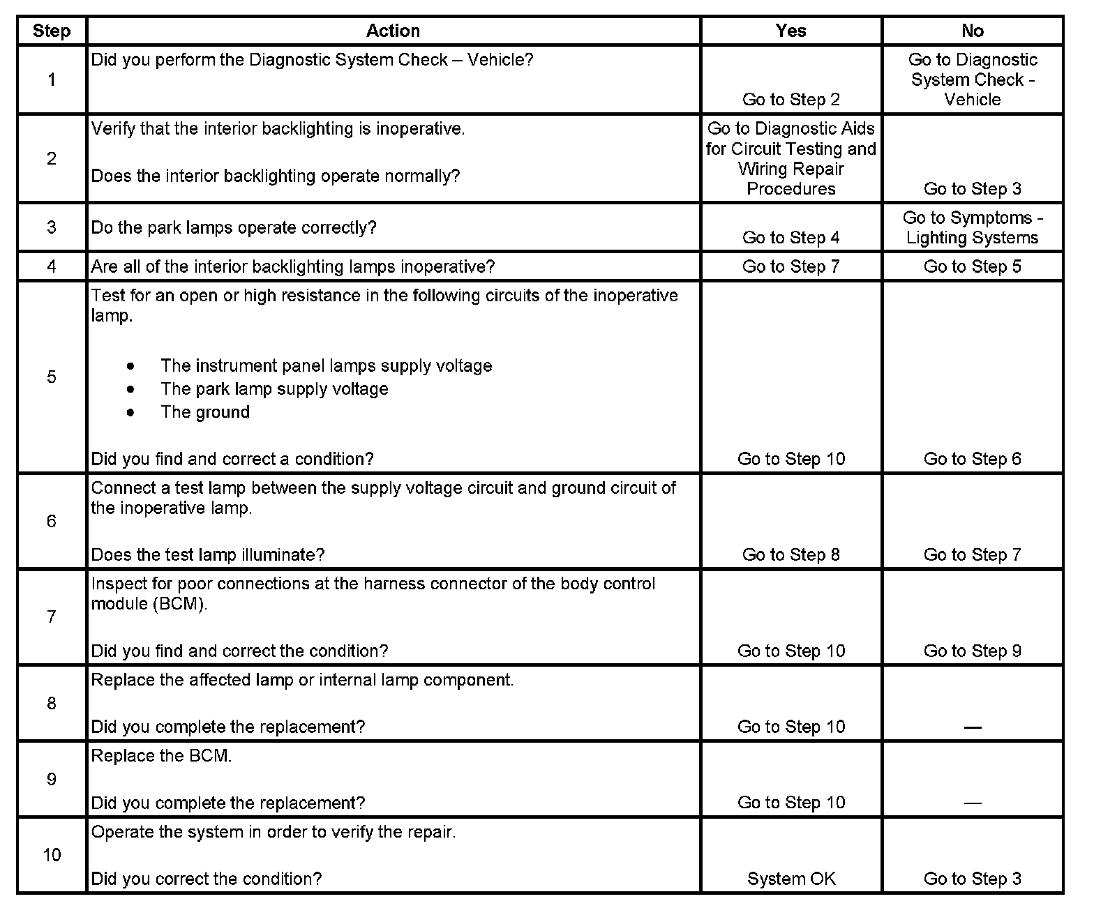 Interior Backlighting Inoperative