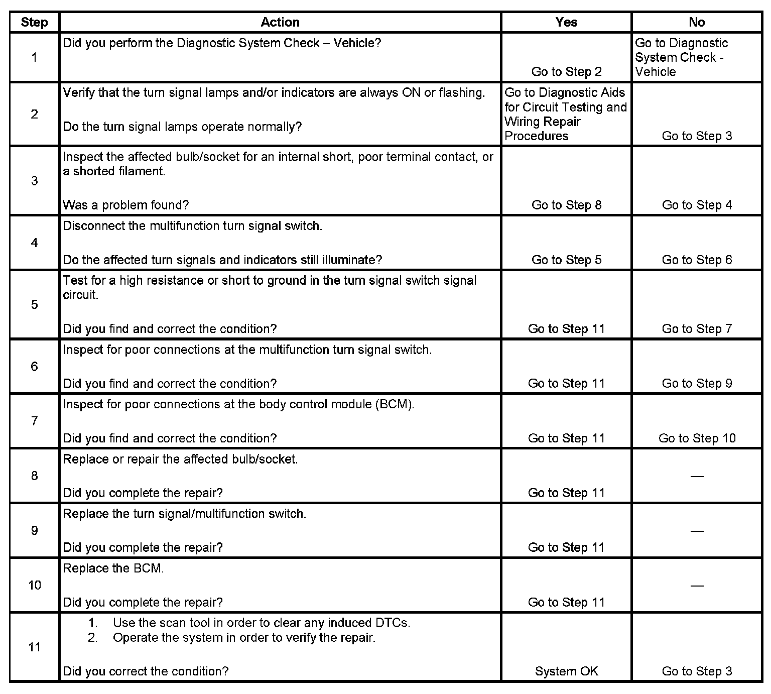 Turn Signal Lamps and/or Indicators Always On or Flashing