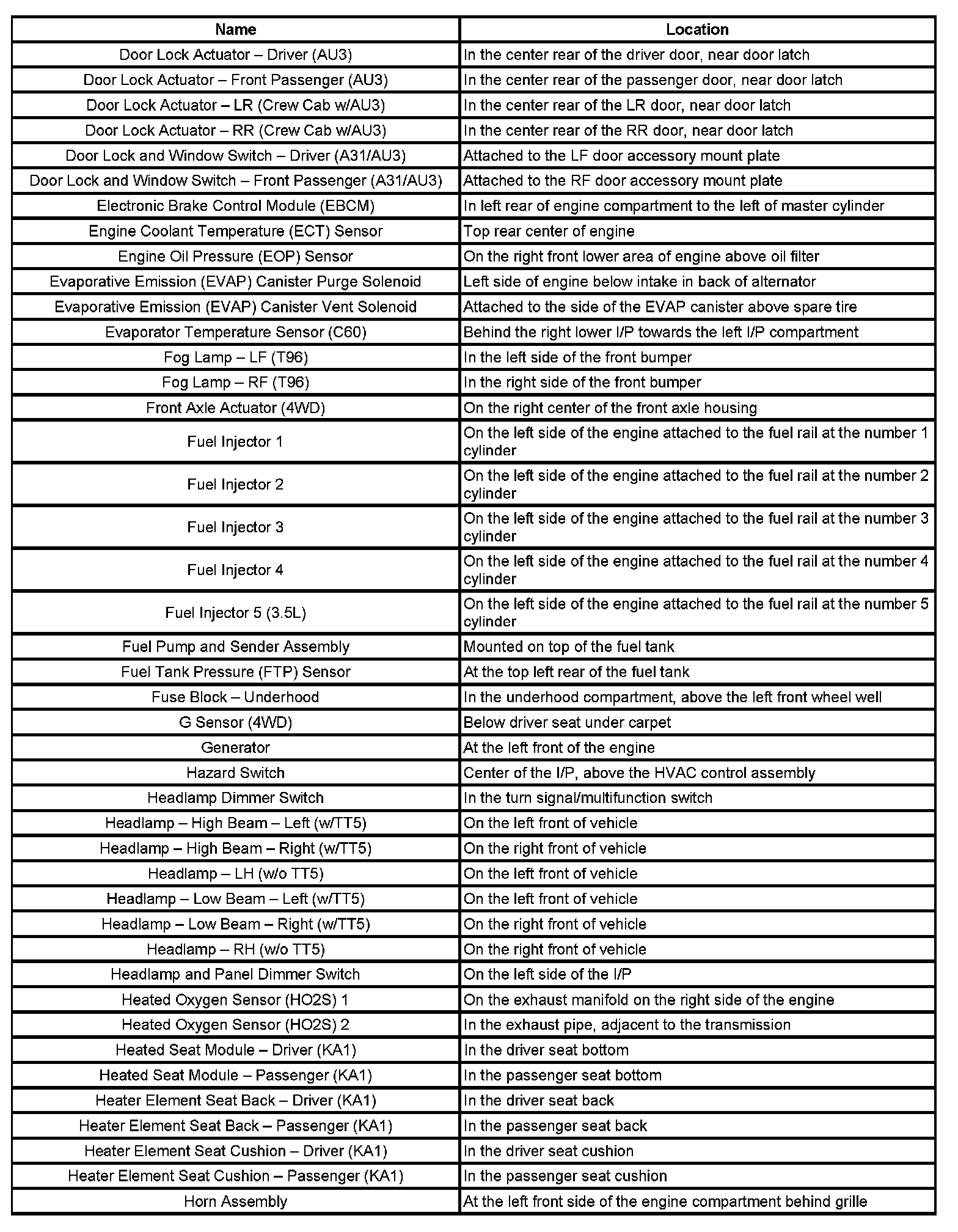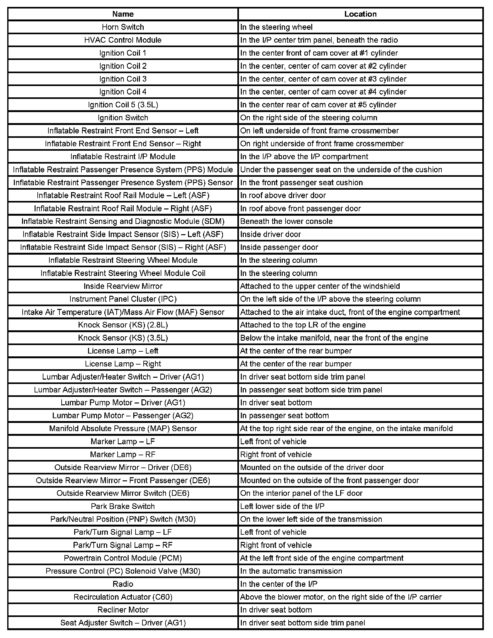 Component Locations