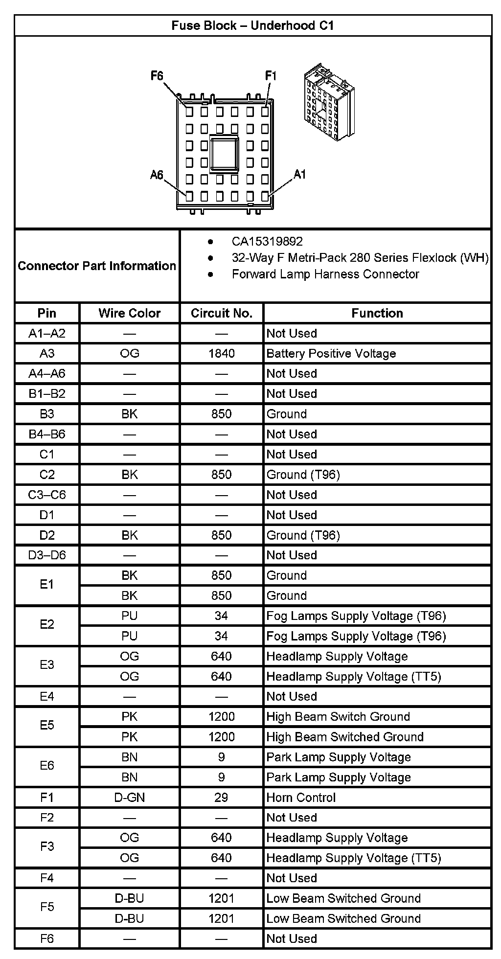 Fuse Block - Underhood C1 Part 2: