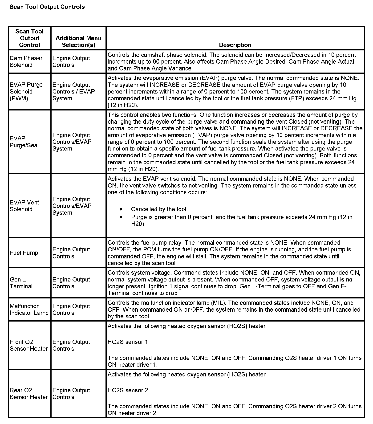 Scan Tool Output Controls:
