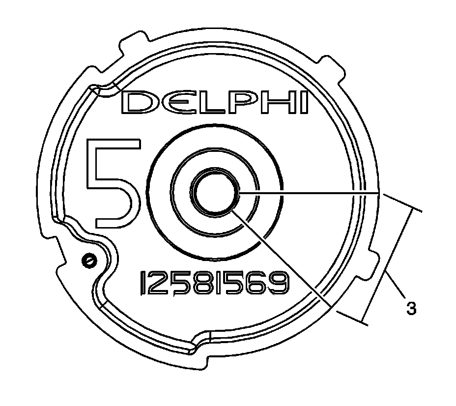2. Scribe or draw a line (1) on the camshaft position actuator outer ring face, in the full advanced position. With the engine at TDC on #1 cylinder, the wording should be level.