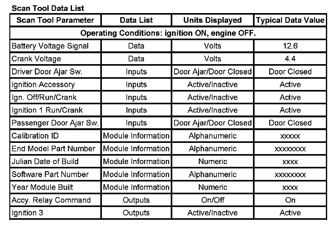 Scan Tool Data List