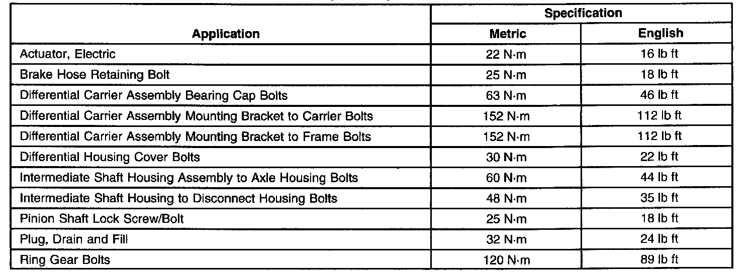 Fastener Tightening Specifications: