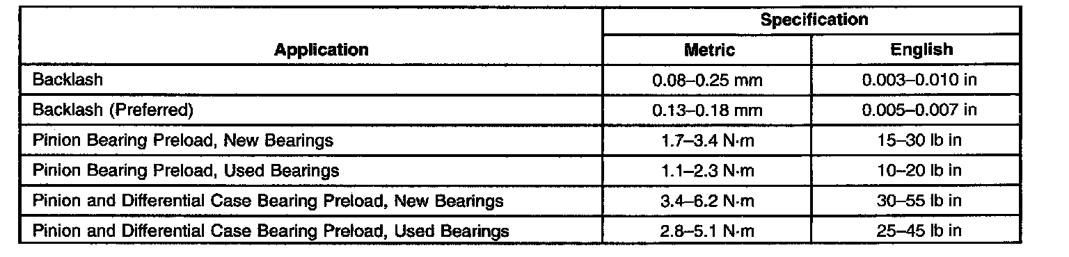 Axle Preload and Backlash Specifications