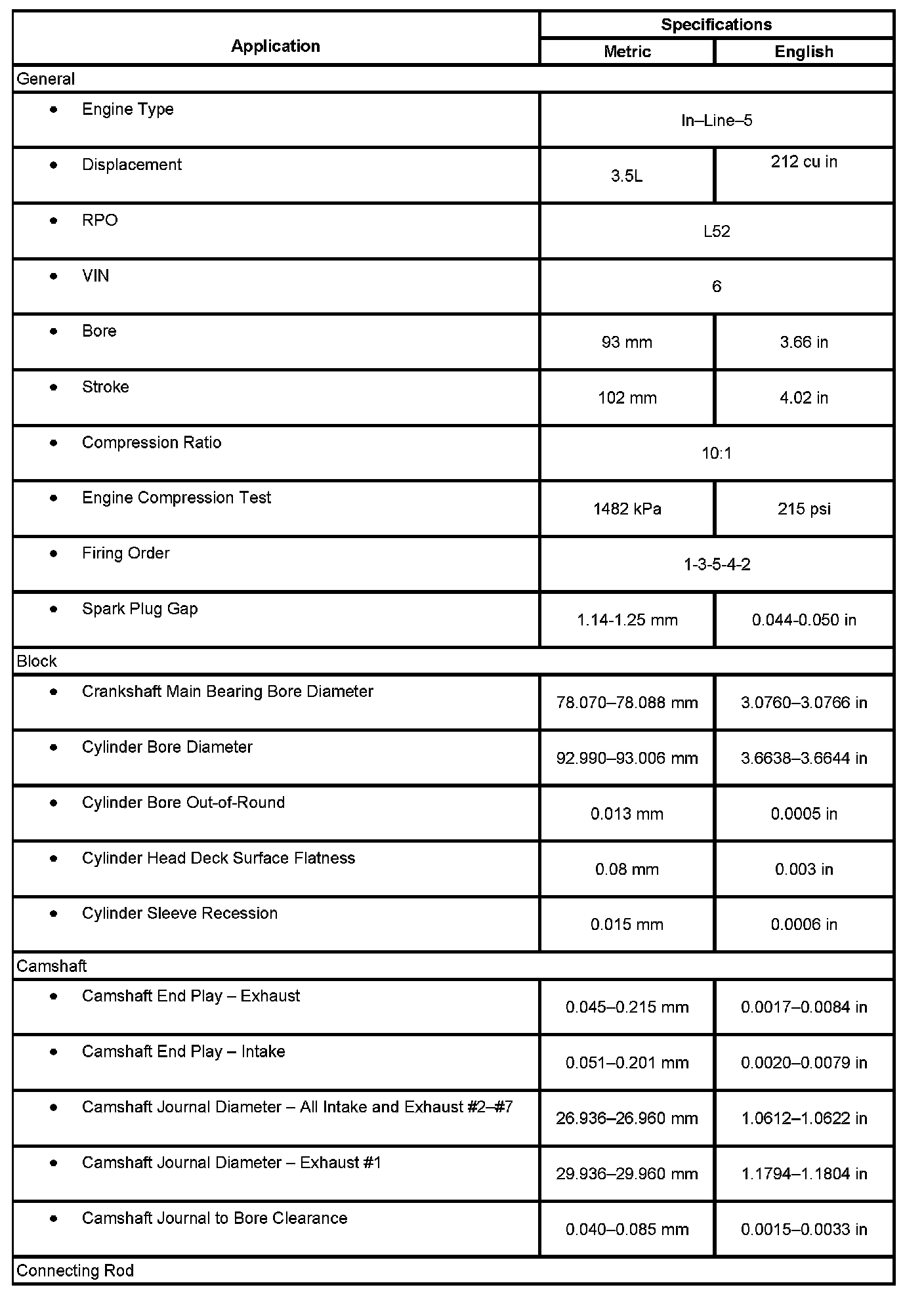 Engine Mechanical Specifications: