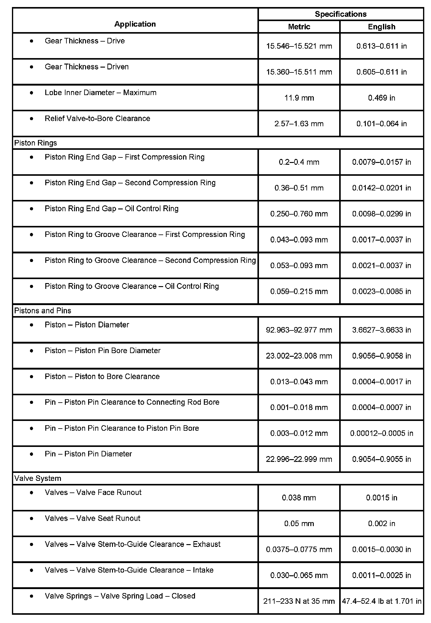Engine Mechanical Specifications