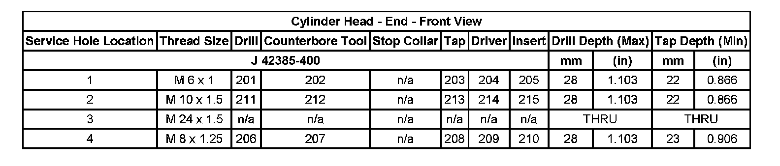 Thread Repair Specifications