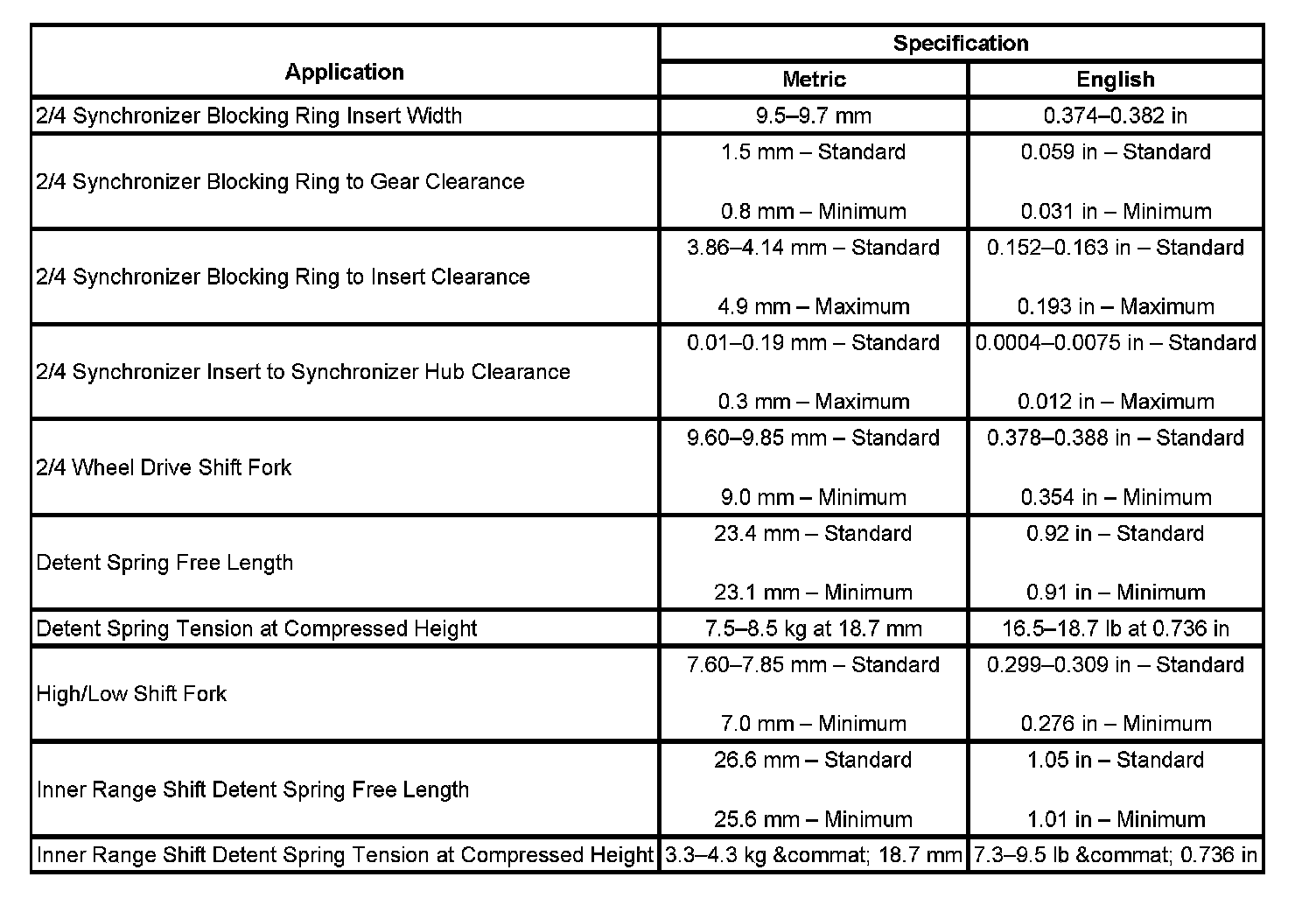 Transfer Case Mechanical Specifications