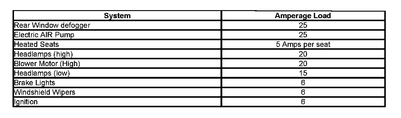 2. When high current loads (blower, rear defogger, headlamps, cooling fan, heated seats, power seats, electric "AIR" pump, or power windows) are operating or cycled "ON", the generator's voltage regulator can delay the rise in output. This effect, usually at lower engine speeds, can