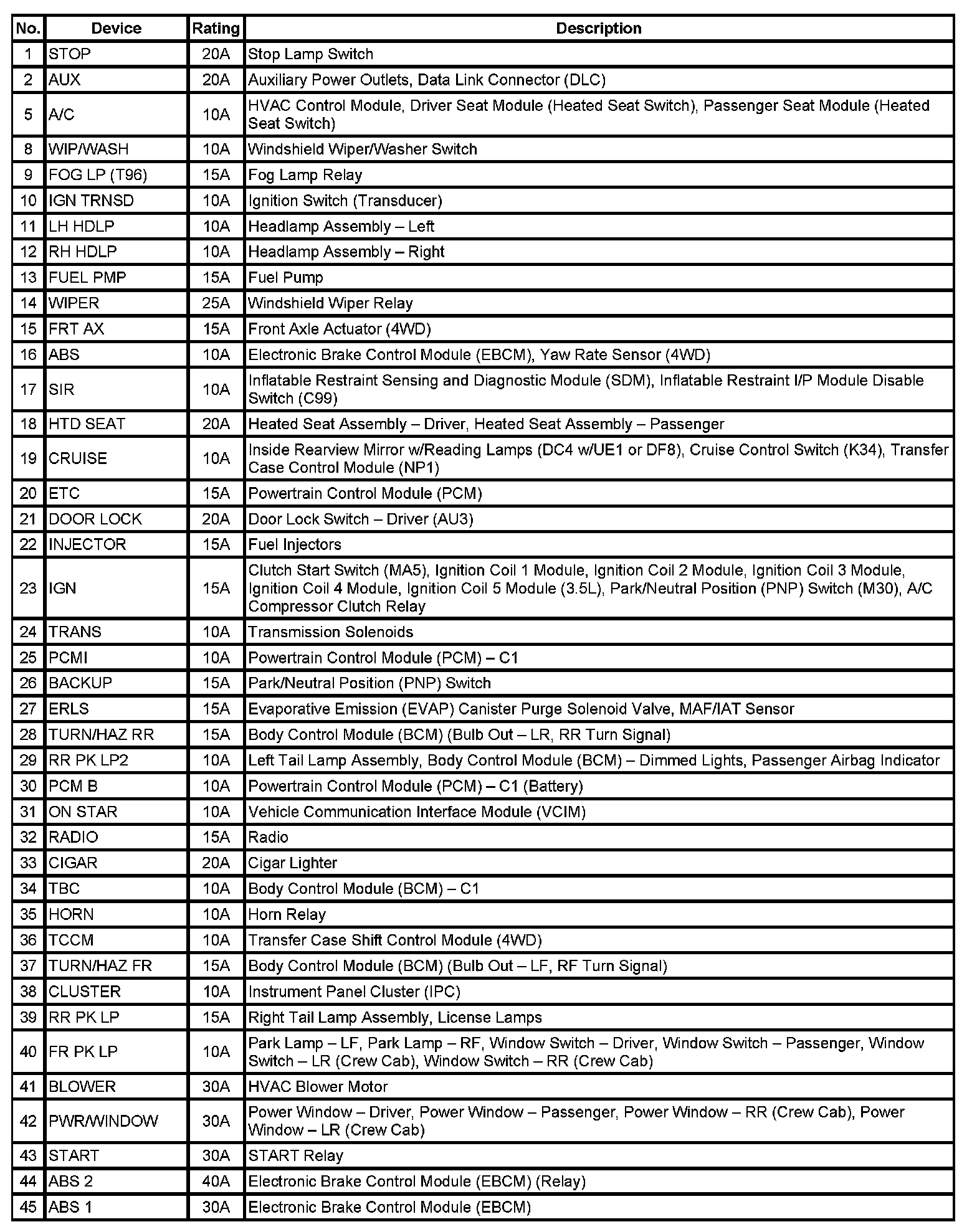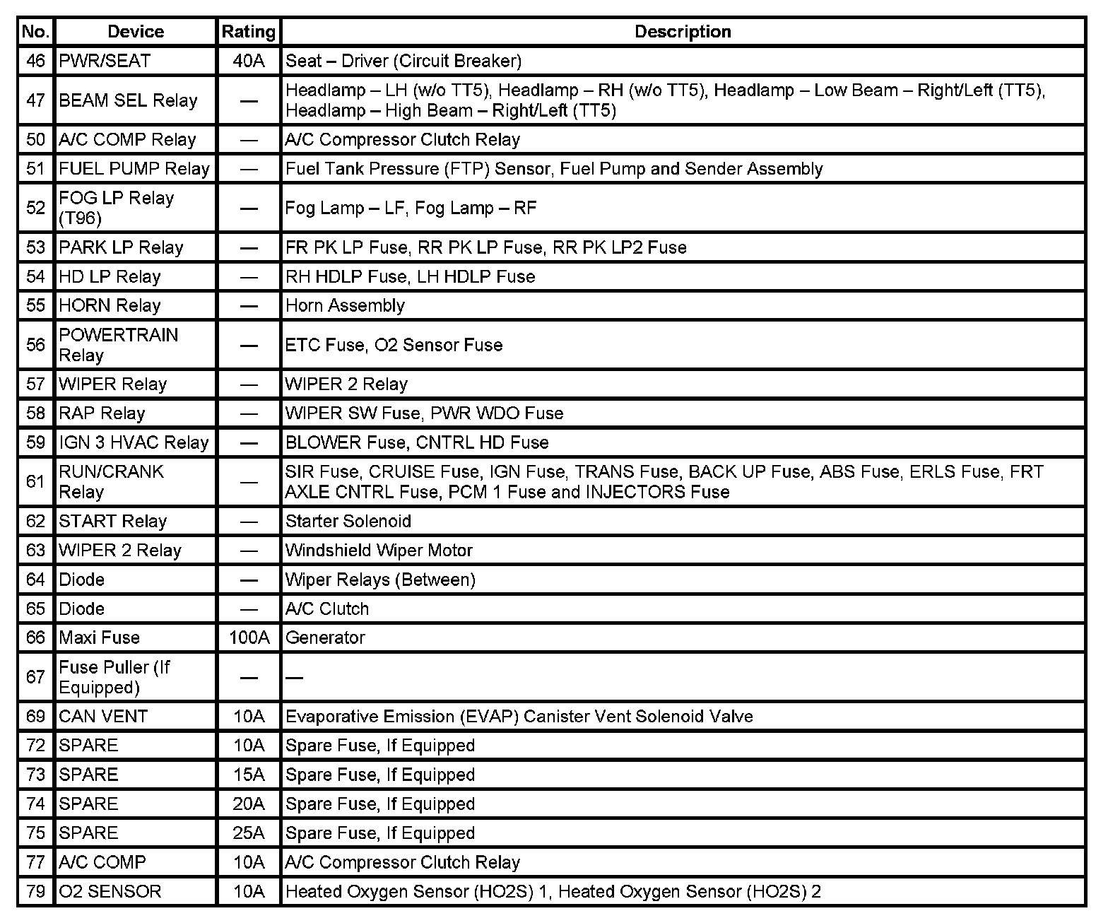 Application Table (Part 1):