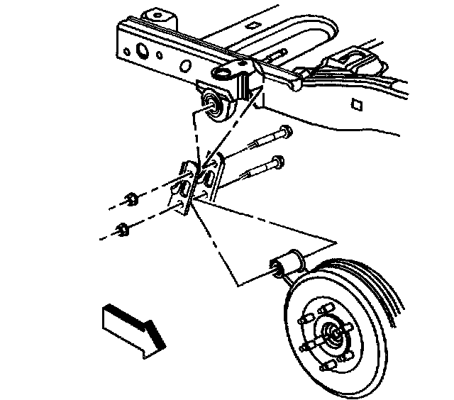 9. Remove the rear spring hanger bracket nut and bolt.