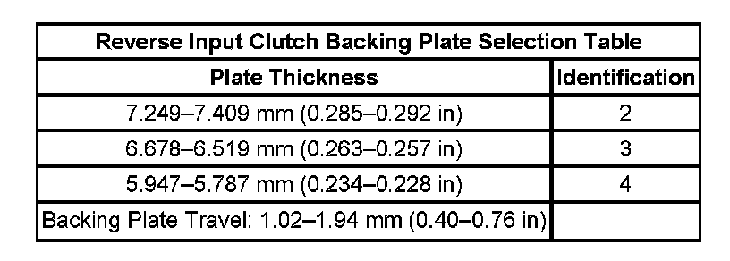 Reverse Input Clutch Backing Plate Selection: