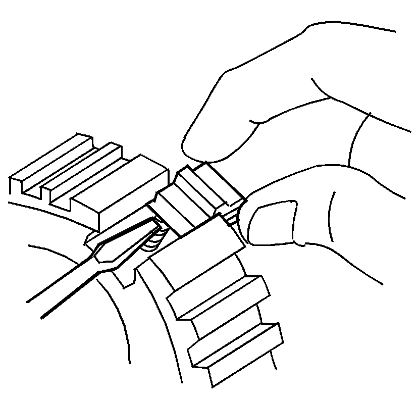 3. Install the 5th gear synchronizer spring (248) between the inserts, with the locating tabs in the opening between the inserts.