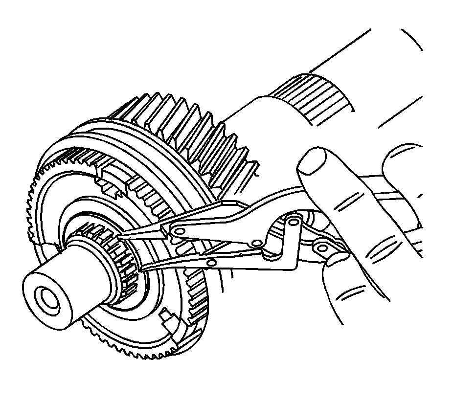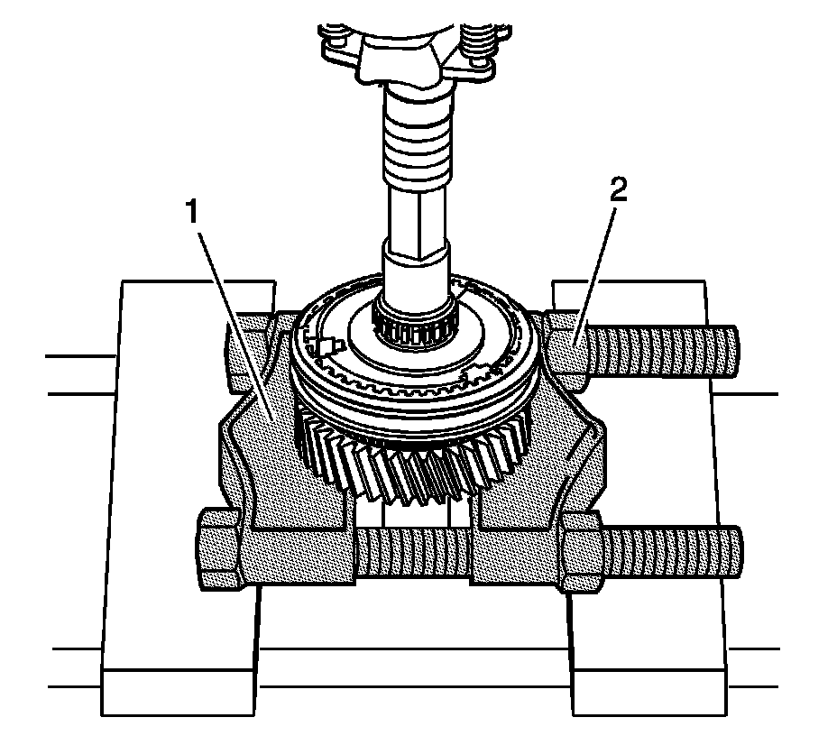 Install the J 22912-01 (2) with the J 45869 (1) under the 3rd gear.