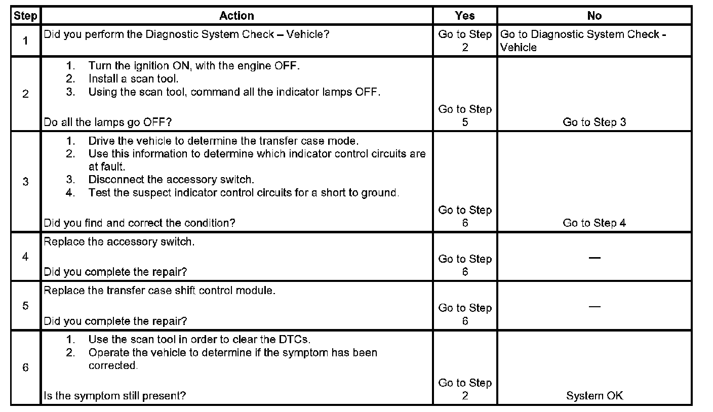 2. This step tests the transfer case electrical control of the lamp circuits.