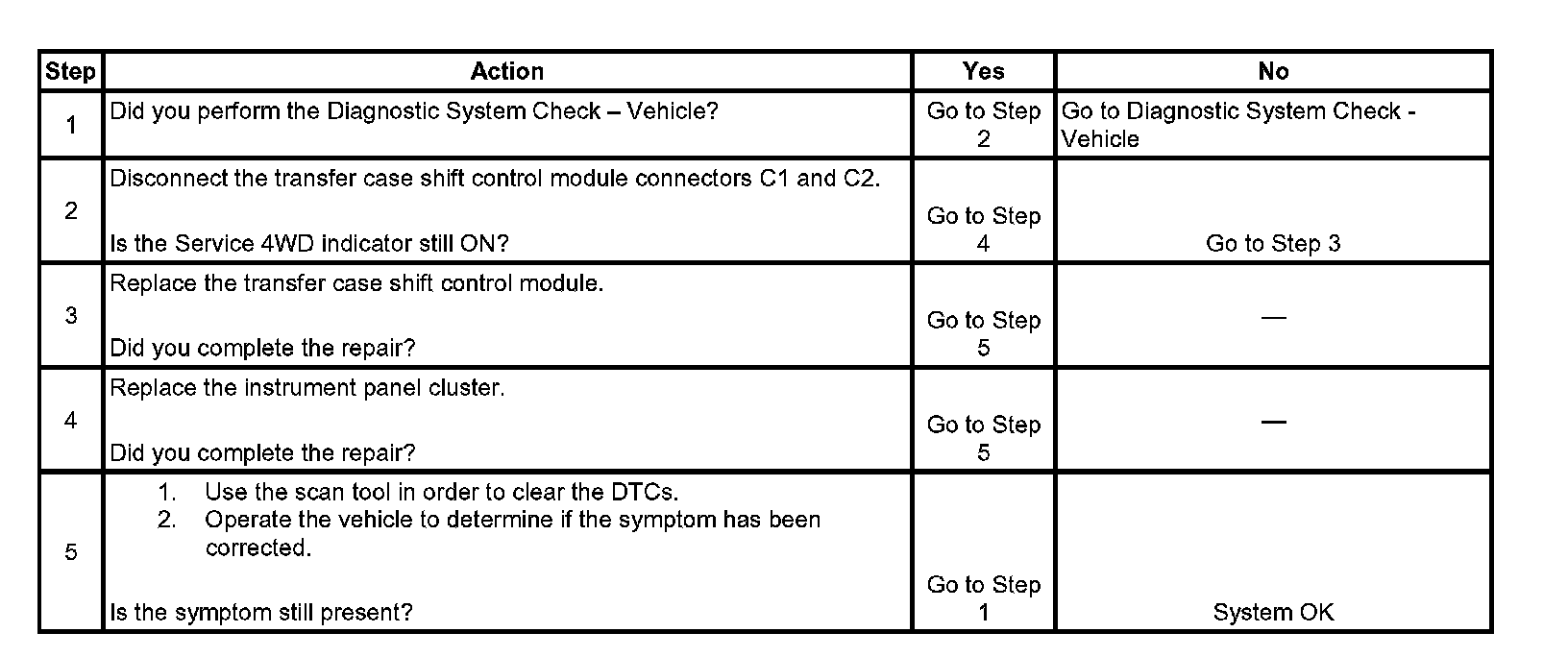 2. This step determines whether the condition is the result of a malfunctioning transfer case shift control module or the IPC.