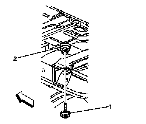 3.Remove the body mount bolt, retainer, and lower cushion (1) from the radiator support.