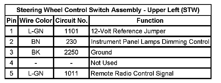 Steering Wheel Control Switch Assembly - Upper Left (STW)