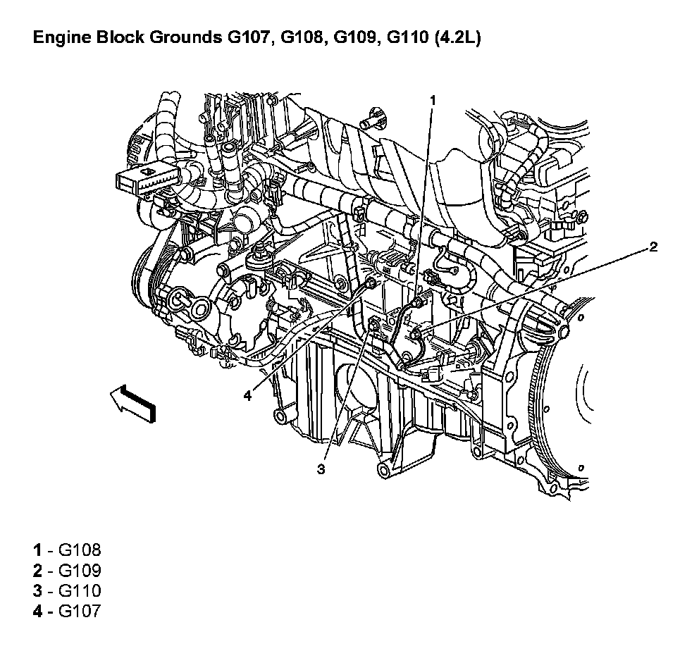 Engine Block Grounds G107, G108, G109, G110 (4.2L):