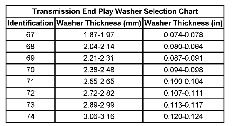 Transmission End Play Wsher Selection Chart: