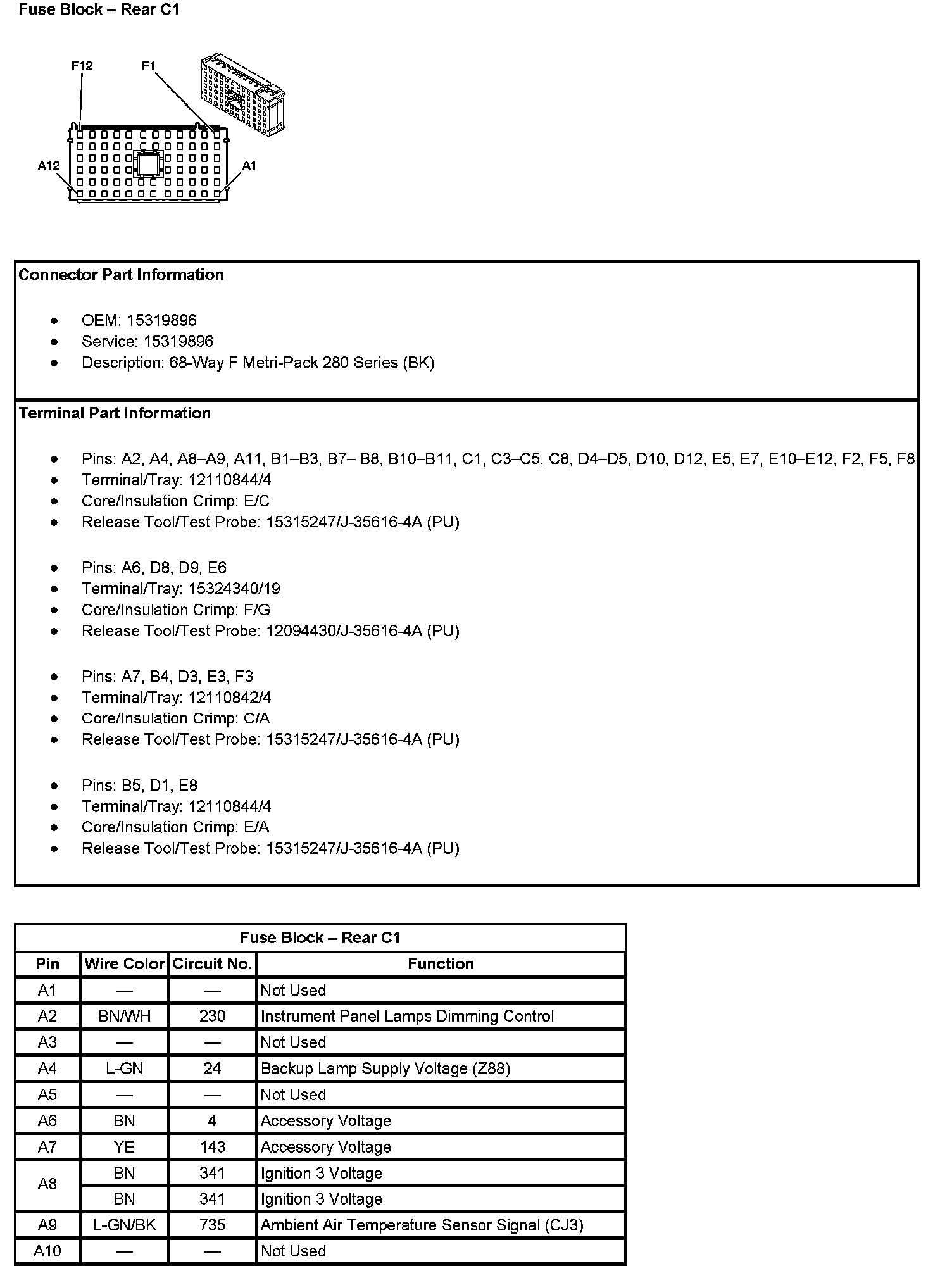 Fuse Block - Rear C1 (Pin A1 To A10):