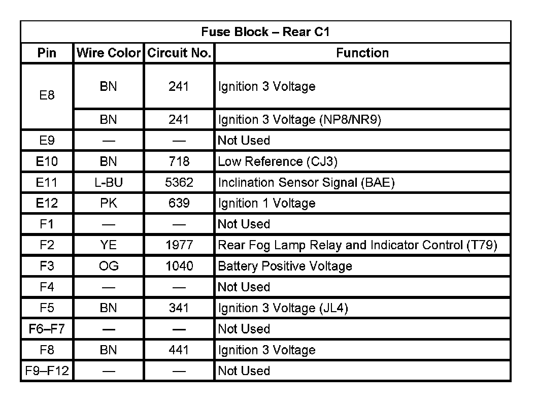 Fuse Block - Rear C1 (Pin E8 To F12):