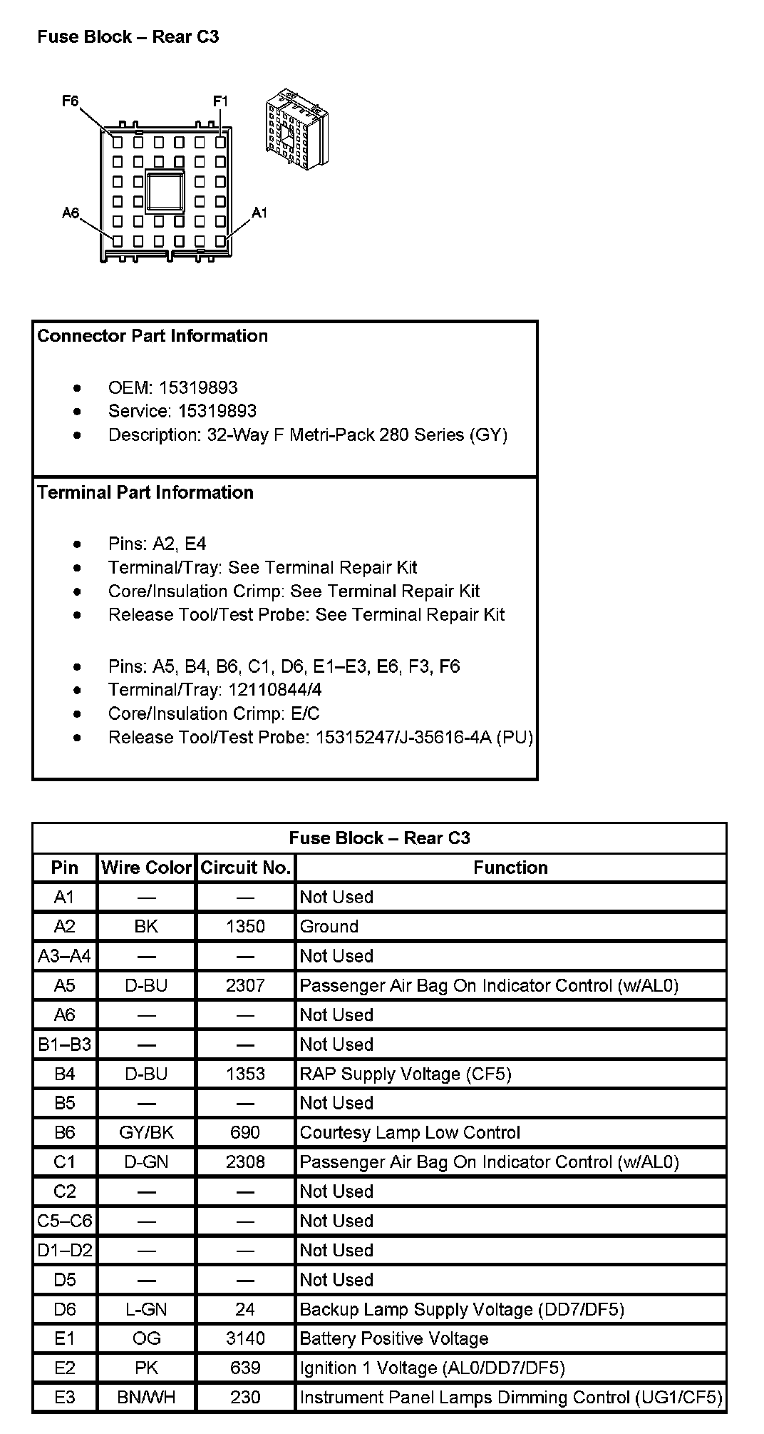 Fuse Block - Rear C2 (Pin A1 To E3):