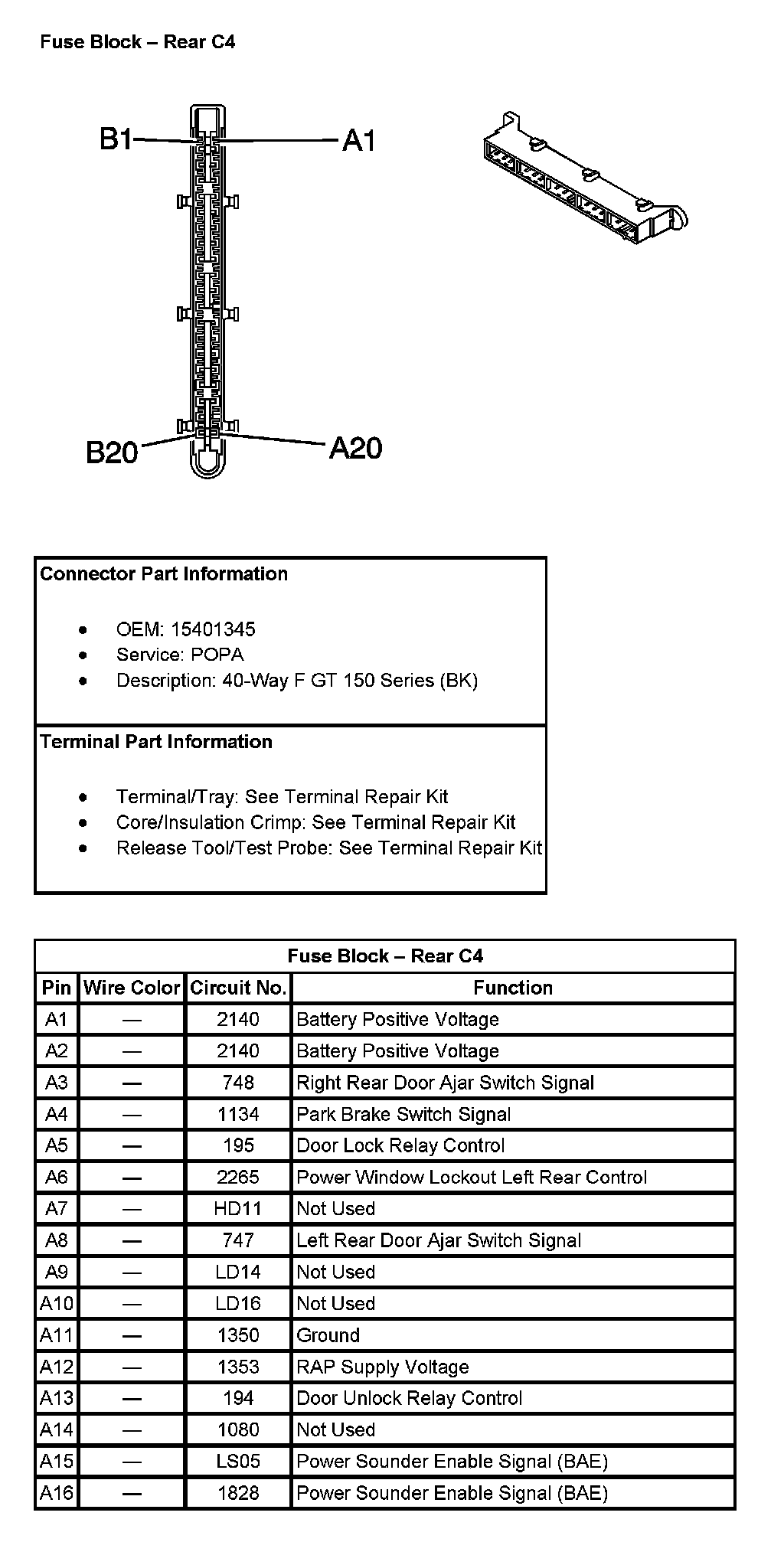 Fuse Block - Rear C4 (Pin A1 To A16):
