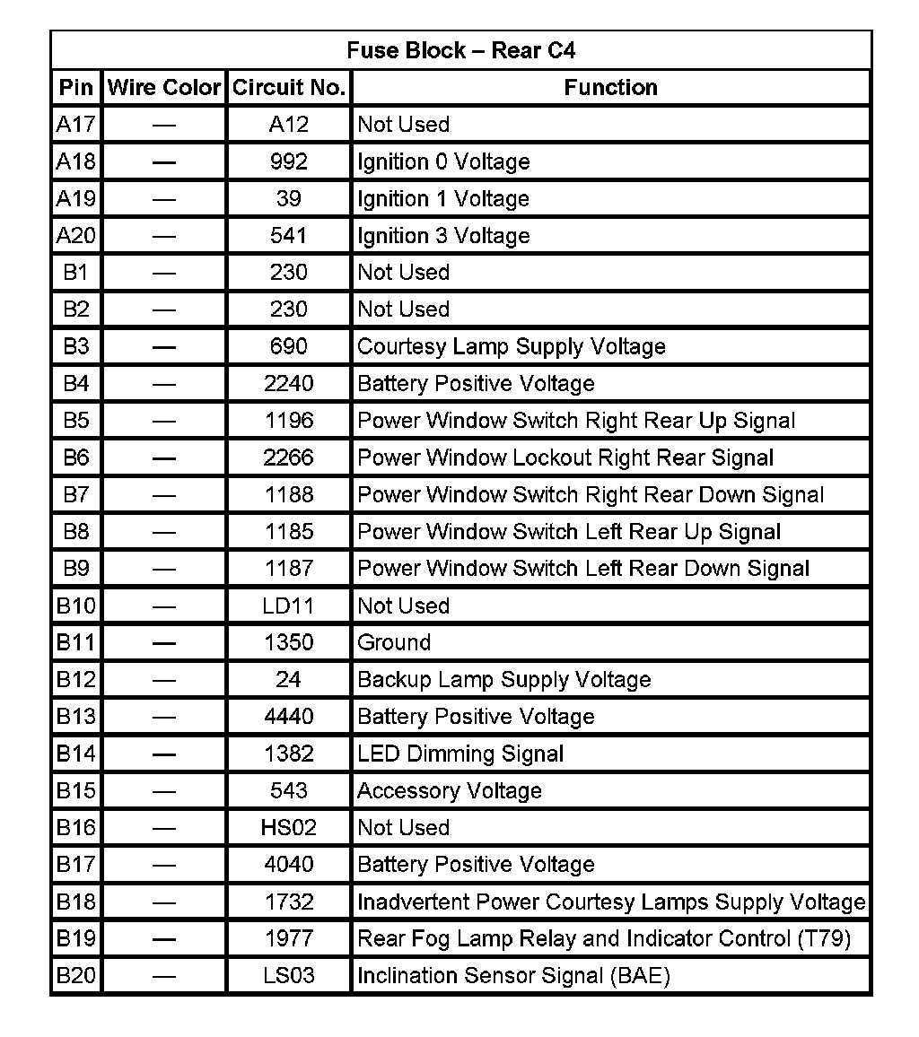 Fuse Block - Rear C4 (Pin A17 To B20):
