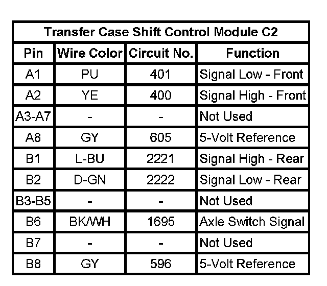 Transfer Case Shift Control Module C2: