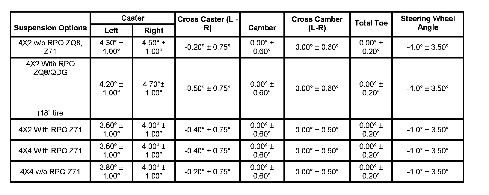 Wheel Alignment Specifications