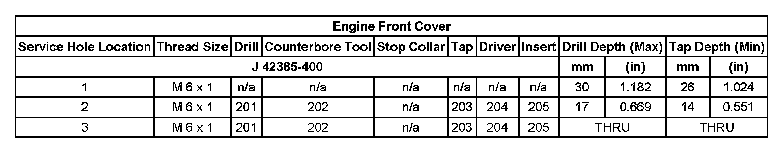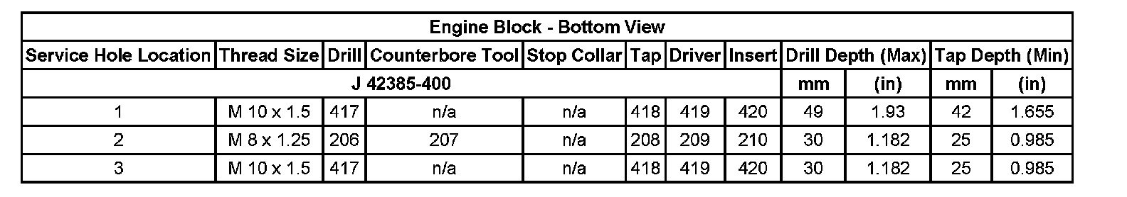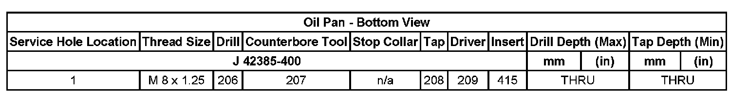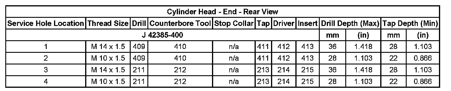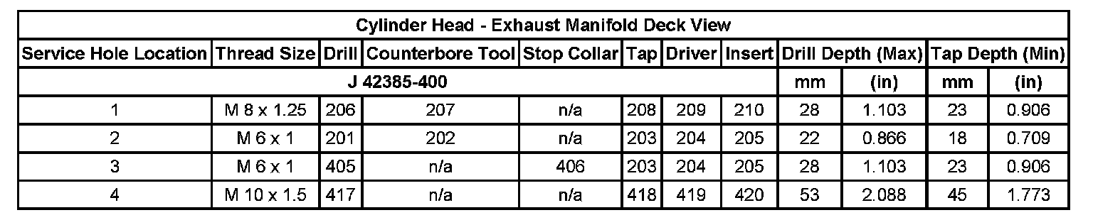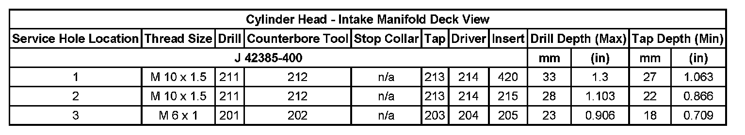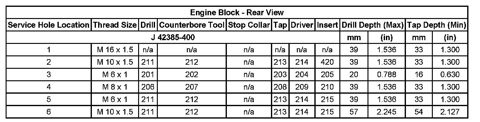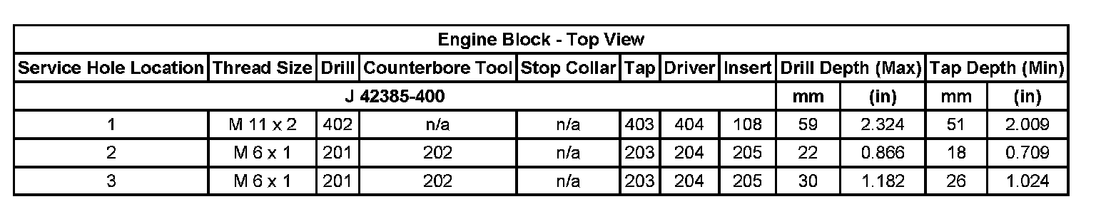 Thread Repair SpecificationsEngine Block - Top View: