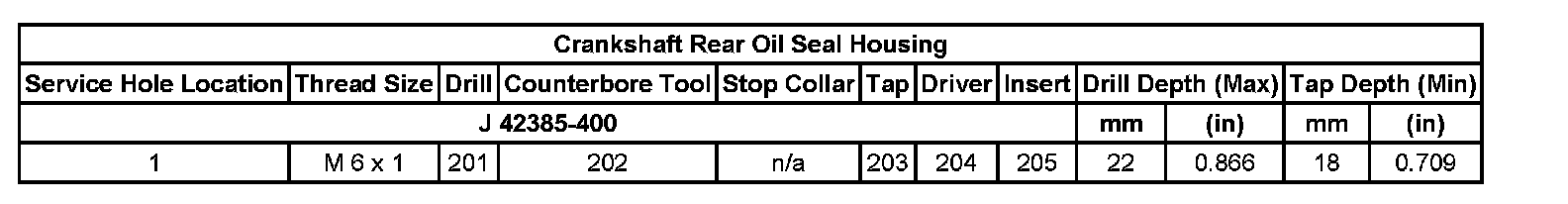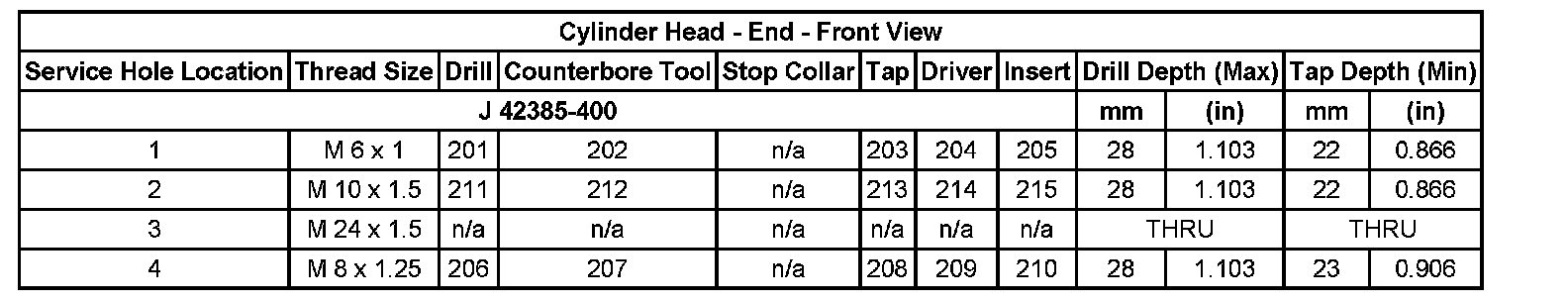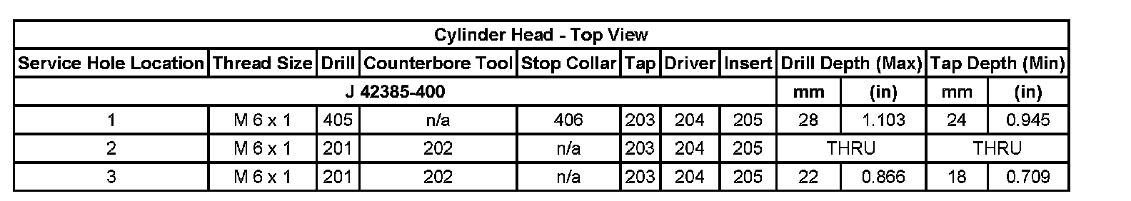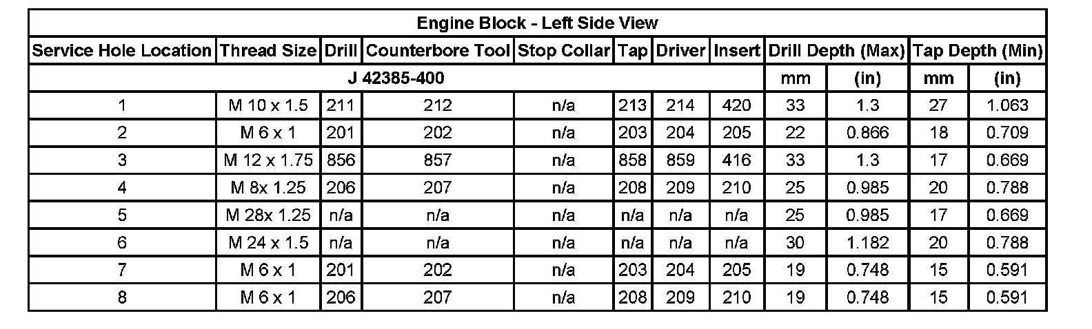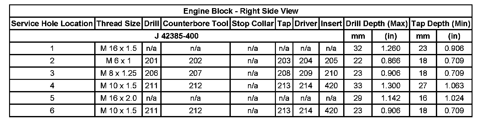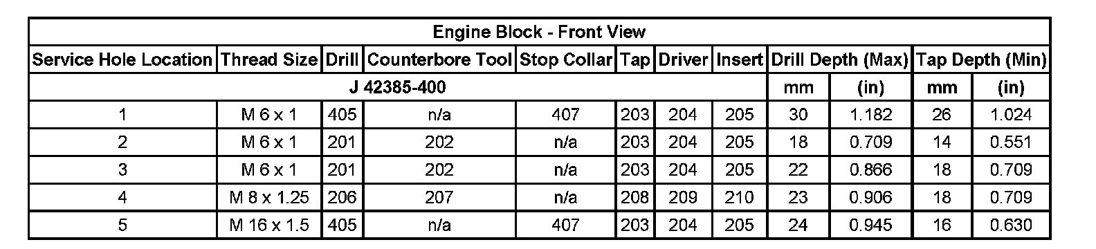 Thread Repair SpecificationsEngine Block - Top View: