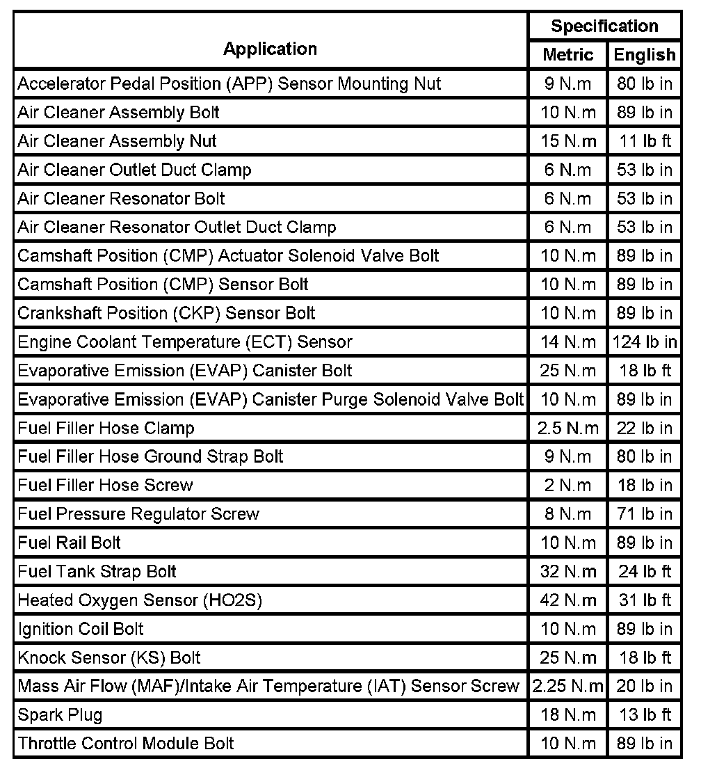 Fastener Tightening Specifications