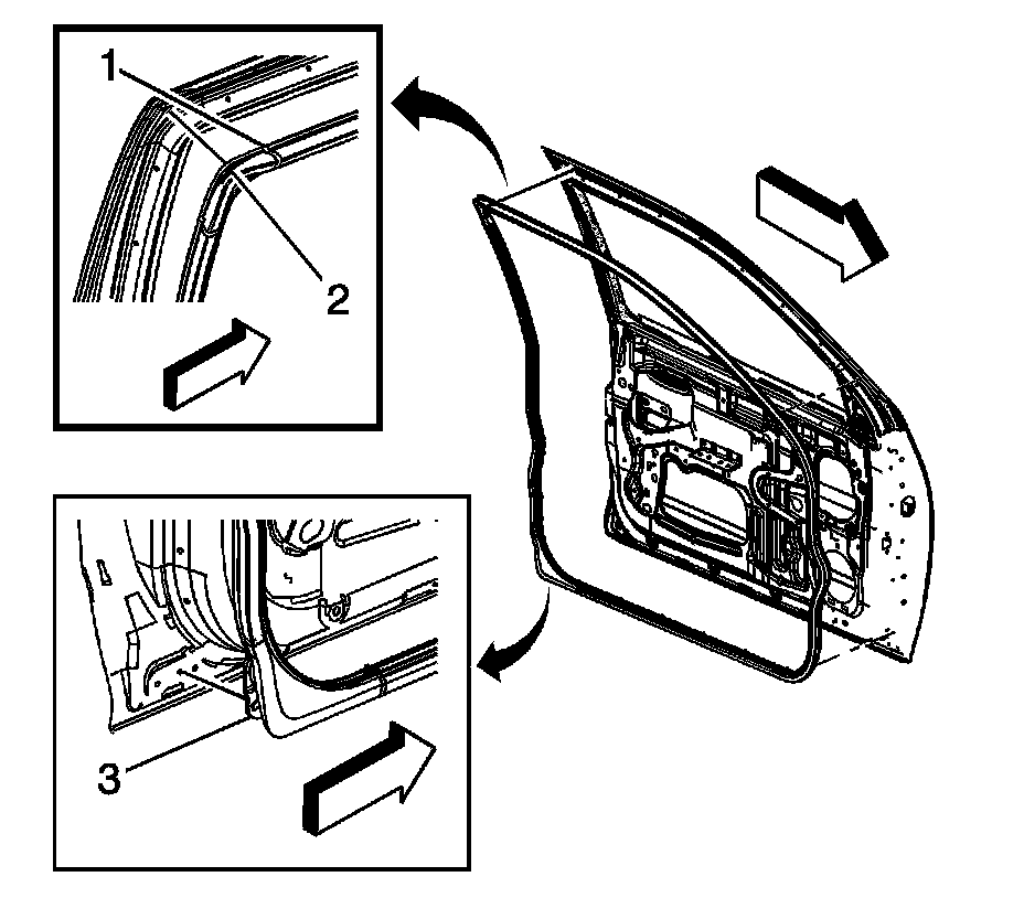 4. Install the weatherstrip around the front door frame using the integral retainers.