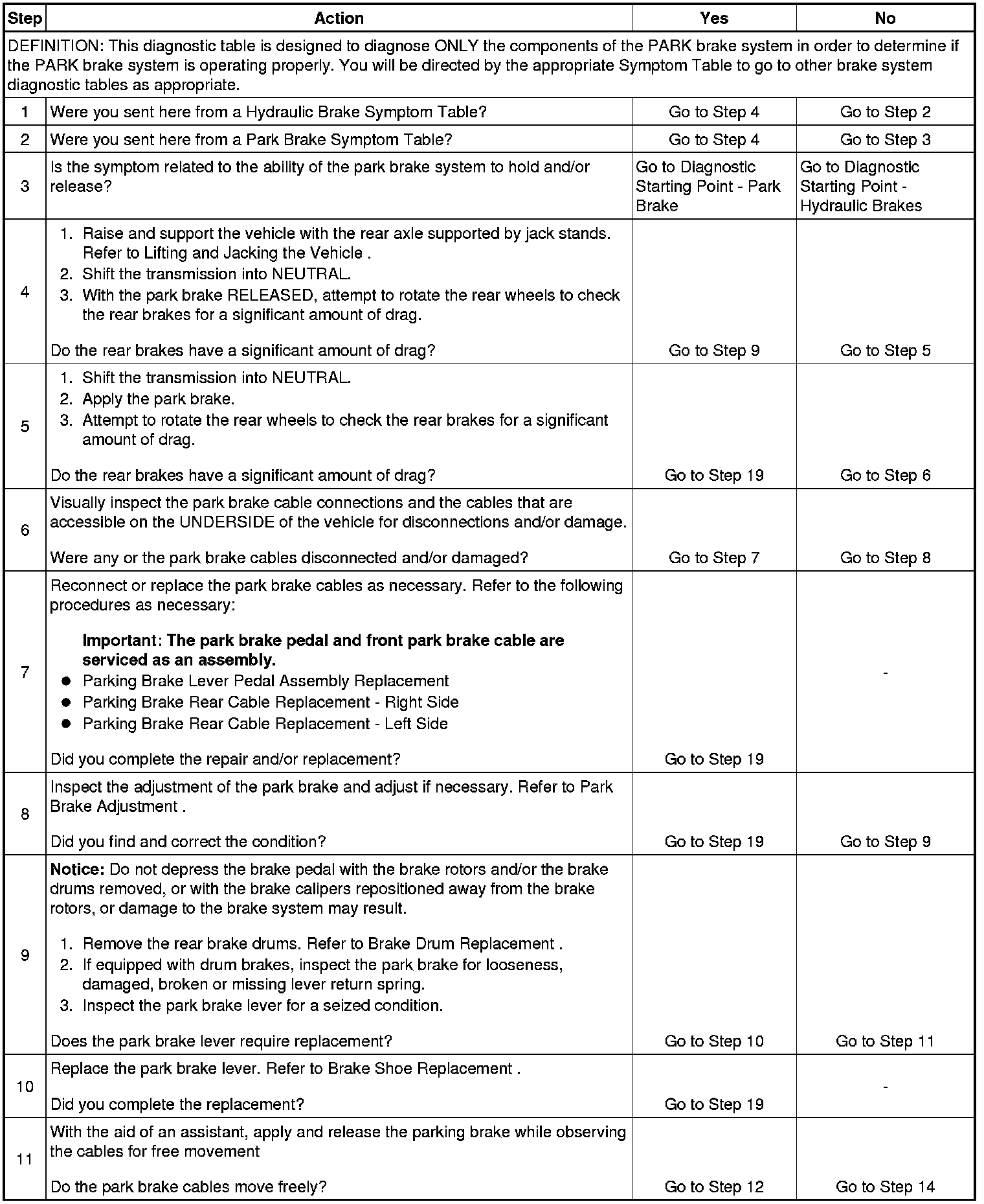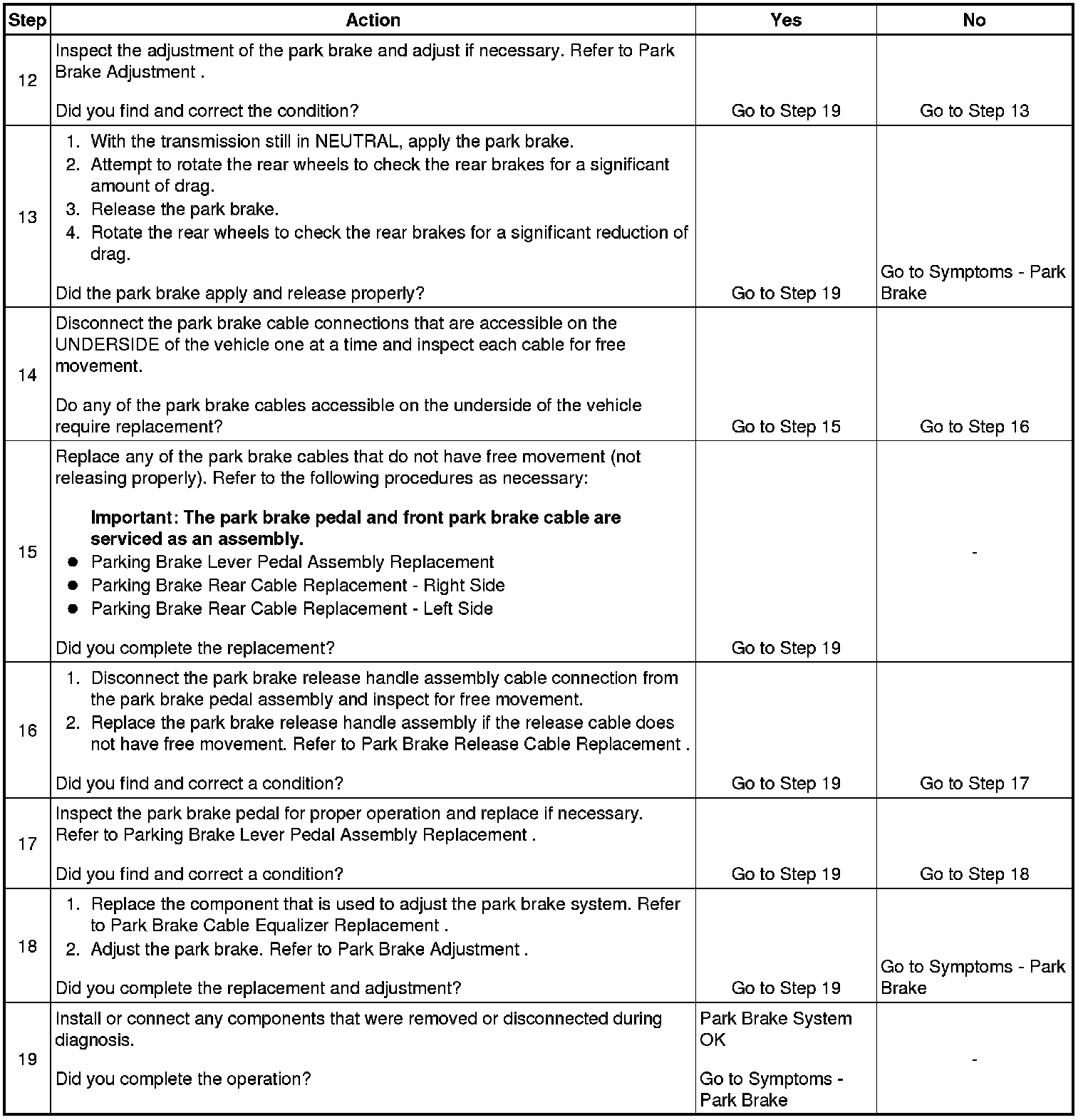 Park Brake System Diagnosis