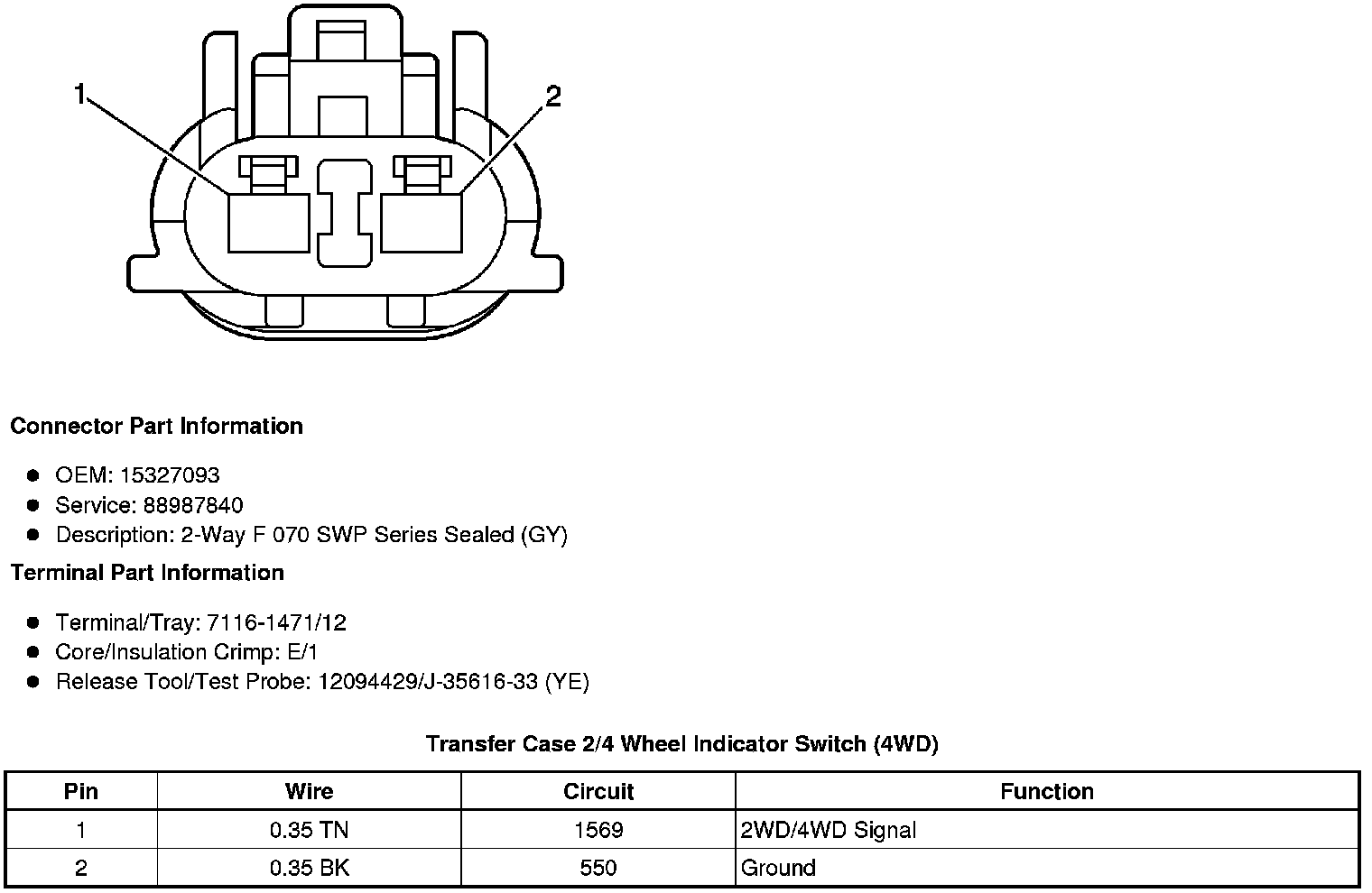Transfer Case 2/4 Wheel Indicator Switch (4WD)