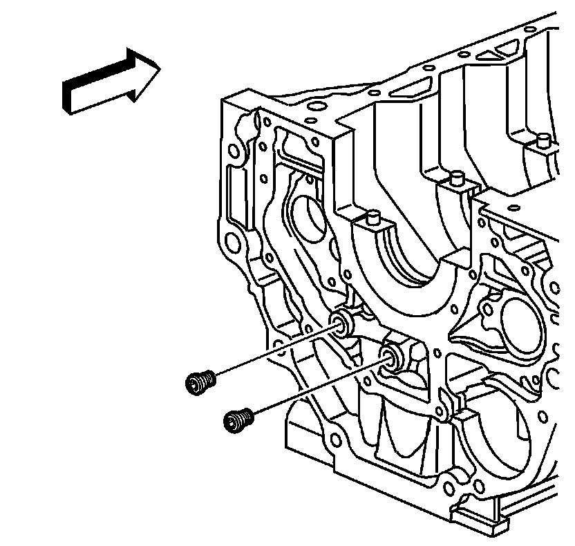 4. Install the engine block oil gallery plugs to front and left of block.