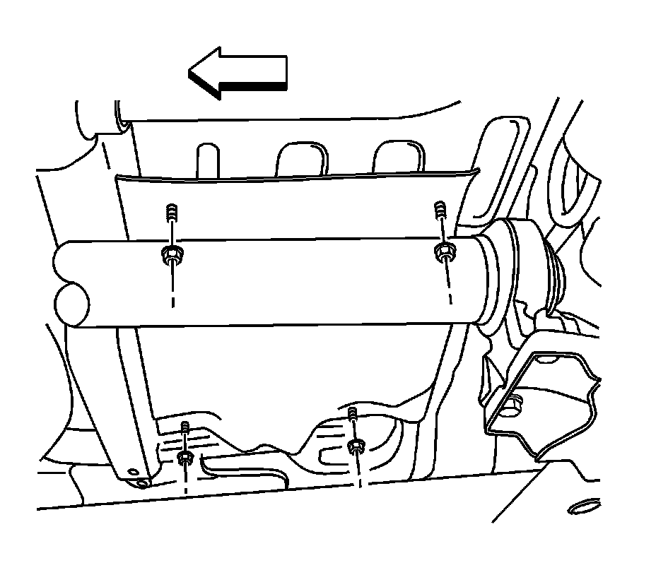 1. Position the exhaust pipe heat shield to the floor panel studs.