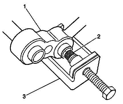 4. Place the suction hose fitting or suction hose side of the manifold into the installation tool fixture J-44551-5 (3) so it is supported by the tools legs.