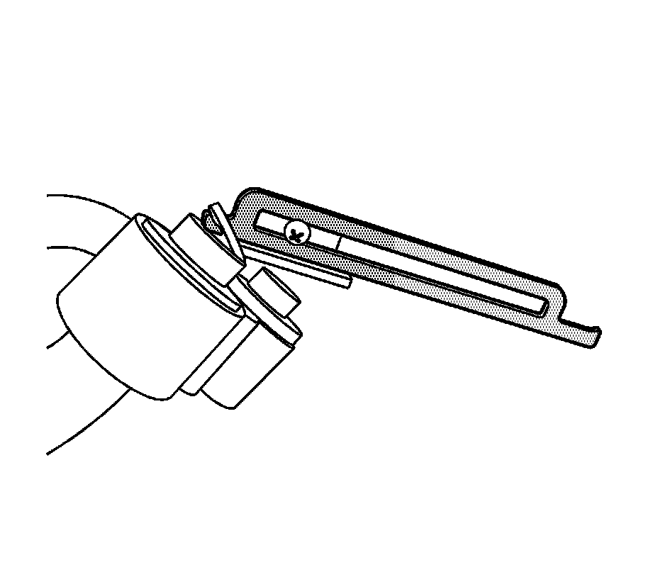 2. Using the J-44551-9 Universal Removal Tool, place the tip of the tool under the inside edge of the compression band of the suction screen and the cushioning fulcrum pad against the open end of the hose or manifold fitting.