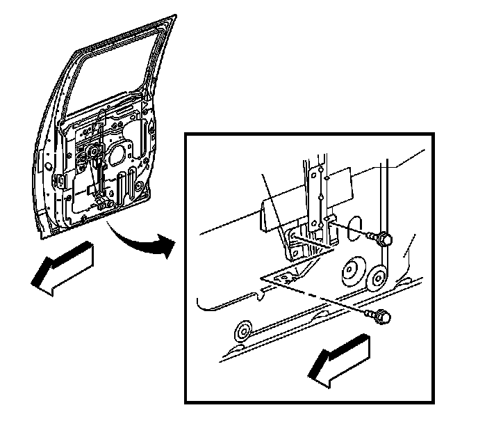2. Remove the rear inside door handle. Refer to Rear Side Door Inside Handle Replacement (Rear Side Door Inside Handle Replacement) .