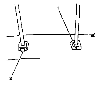 3. In order to release the head restraint retainer, simultaneously lift up on the head restraint while applying inward pressure to the tool in the retainer release port (1).