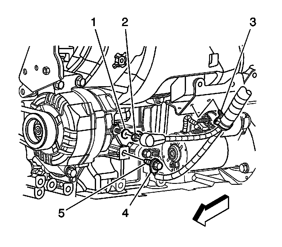 15. Remove the bolt (5) securing the negative battery cable ground terminal (4) to the engine block.