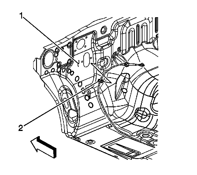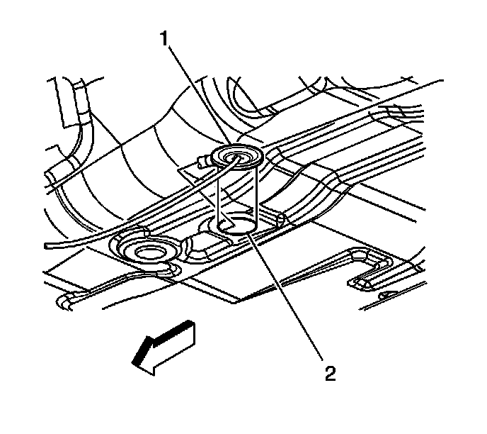 1. Push the range selector cable down through the floor panel (2) and seat the cable grommet (1).